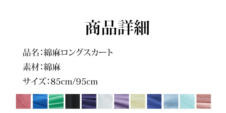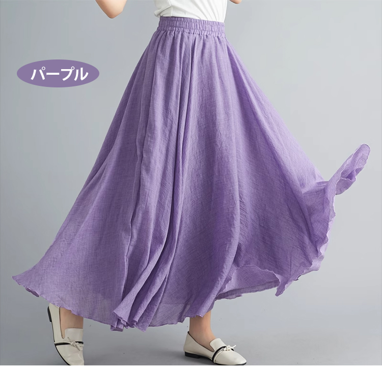 無地デザインの綿麻ロングスカート詳細画像
