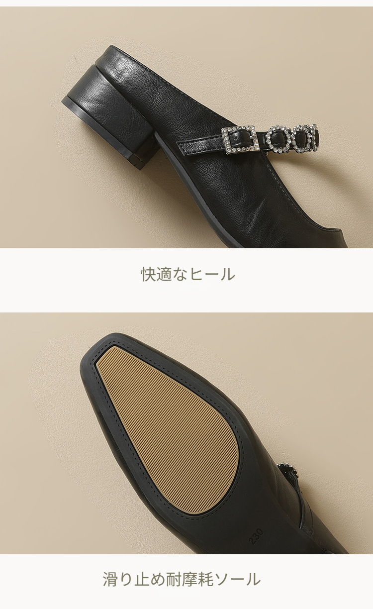 フレンチスタイルのクローズドトゥハーフスリッパ正面画像